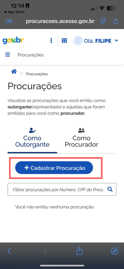 3. Clique em Procurações Eletrônicas e em Cadastrar Procuração;