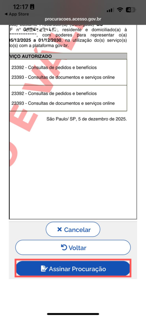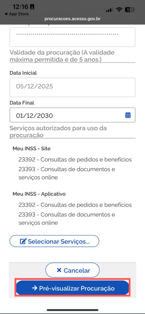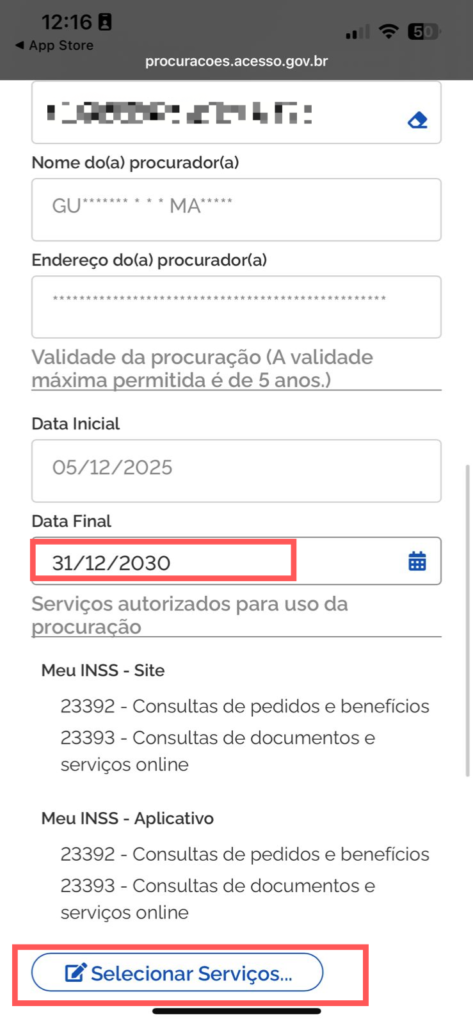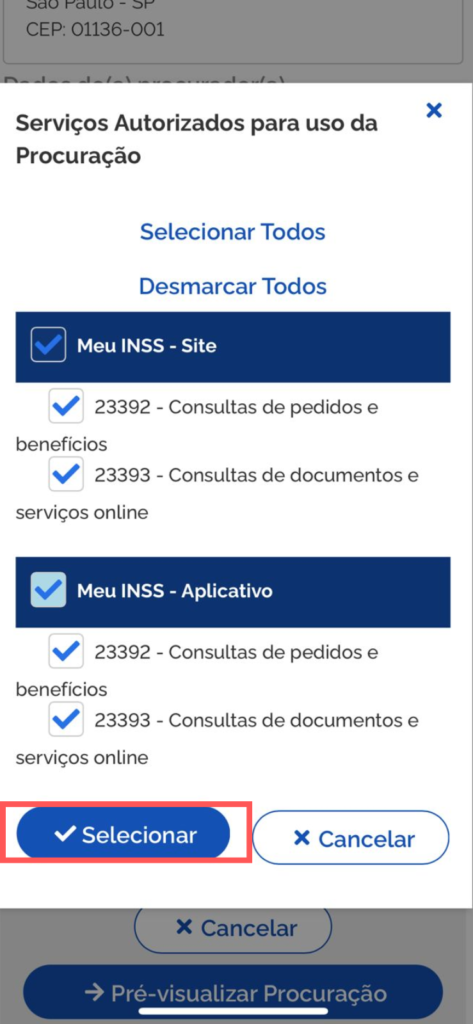 Além disso, o segurado precisa indicar no momento do cadastro, quais serviços o representante poderá acessar, o período de validade da procuração.